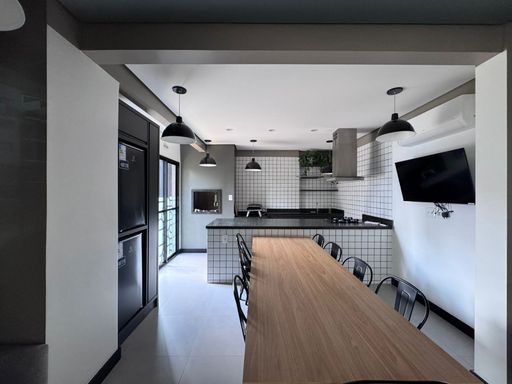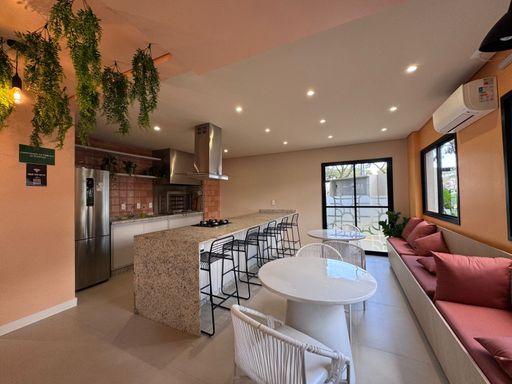 A sacada com churrasqueira é ideal para momentos de lazer e descontração. O apartamento também possui infraestrutura para ar-condicionado e gás, permitindo personalizar o espaço conforme suas necessidades.