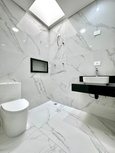 Banheiros amplos e bem ventilados